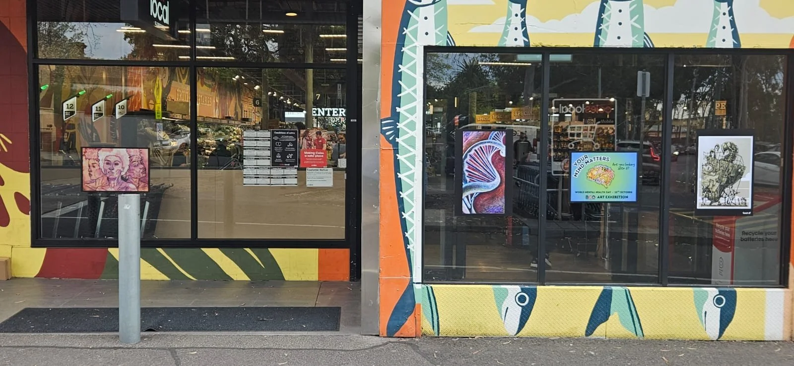 This exhibition celebrates 10 local artists. Artworks are displayed at the following 11 locations on the external windows throughout October.